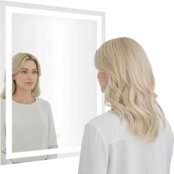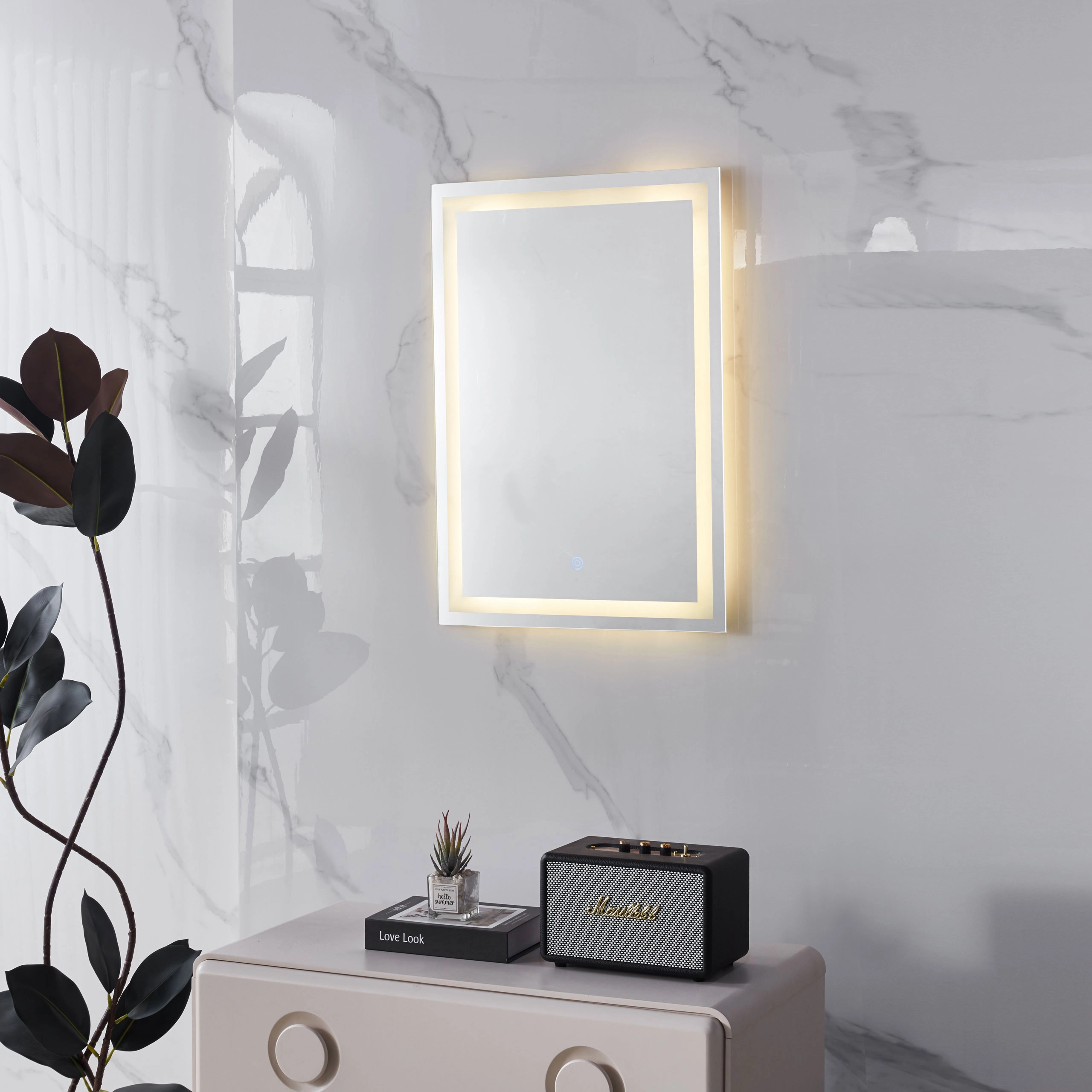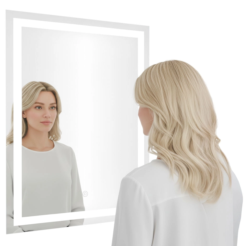 Giv dit badeværelse et rent design og praktisk belysning. Dette vægmonterede LED-spejl med diskret bagbelysning fremhæver indretningen og giver samtidig klart og jævnt lys til personlig pleje. Touch-knappen på forsiden er diskret oplyst, så du let finder den i mørke.