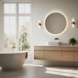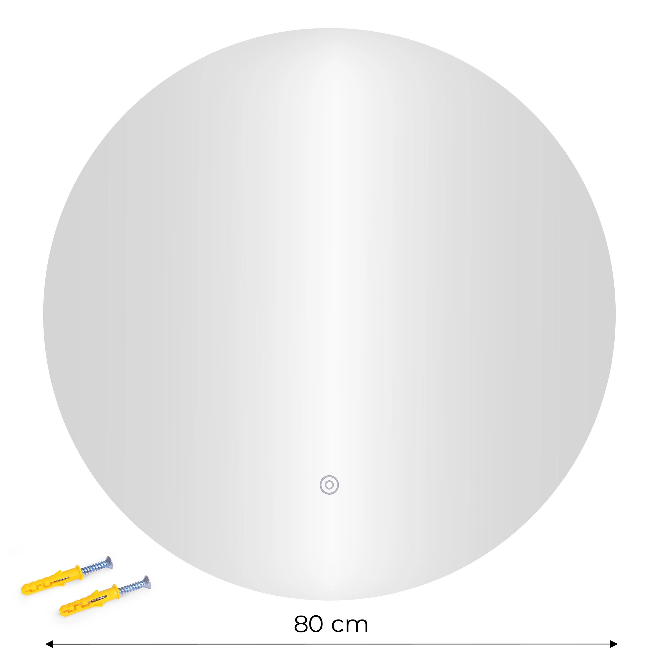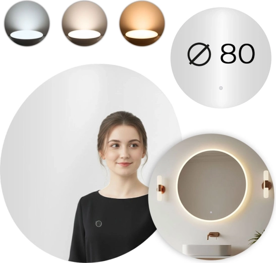 Skab et perfekt oplyst sted i badeværelset til den daglige pleje. Det runde LED-spejl MODERNHOME med en diameter på 80 cm kombinerer et rent rammeløst udtryk og funktionel kantbelysning hele vejen rundt, som ikke blænder og giver et behageligt, jævnt lys. Den integrerede berøringskontakt med diskret bagbelysning sikrer intuitiv betjening selv i mørke.