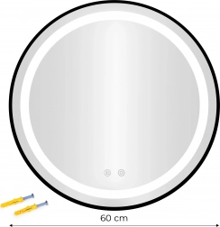 Elegant rundt spejl med slank ramme og solidt metalbeslag. I pakken finder du også rawlplugs og skruer til hurtig installation.
