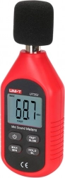 UNI-T UT353 er en pålidelig håndholdt lydtryksmåler, som er ideel til støjkontrol i skoler, kontorer, værksteder og ved offentlige arrangementer. Takket være en følsom 1/2" kondensatormikrofon og 0,1 dB opløsning registrerer den præcist ændringer i miljøet og giver læsbare resultater på det bagbelyste LCD.