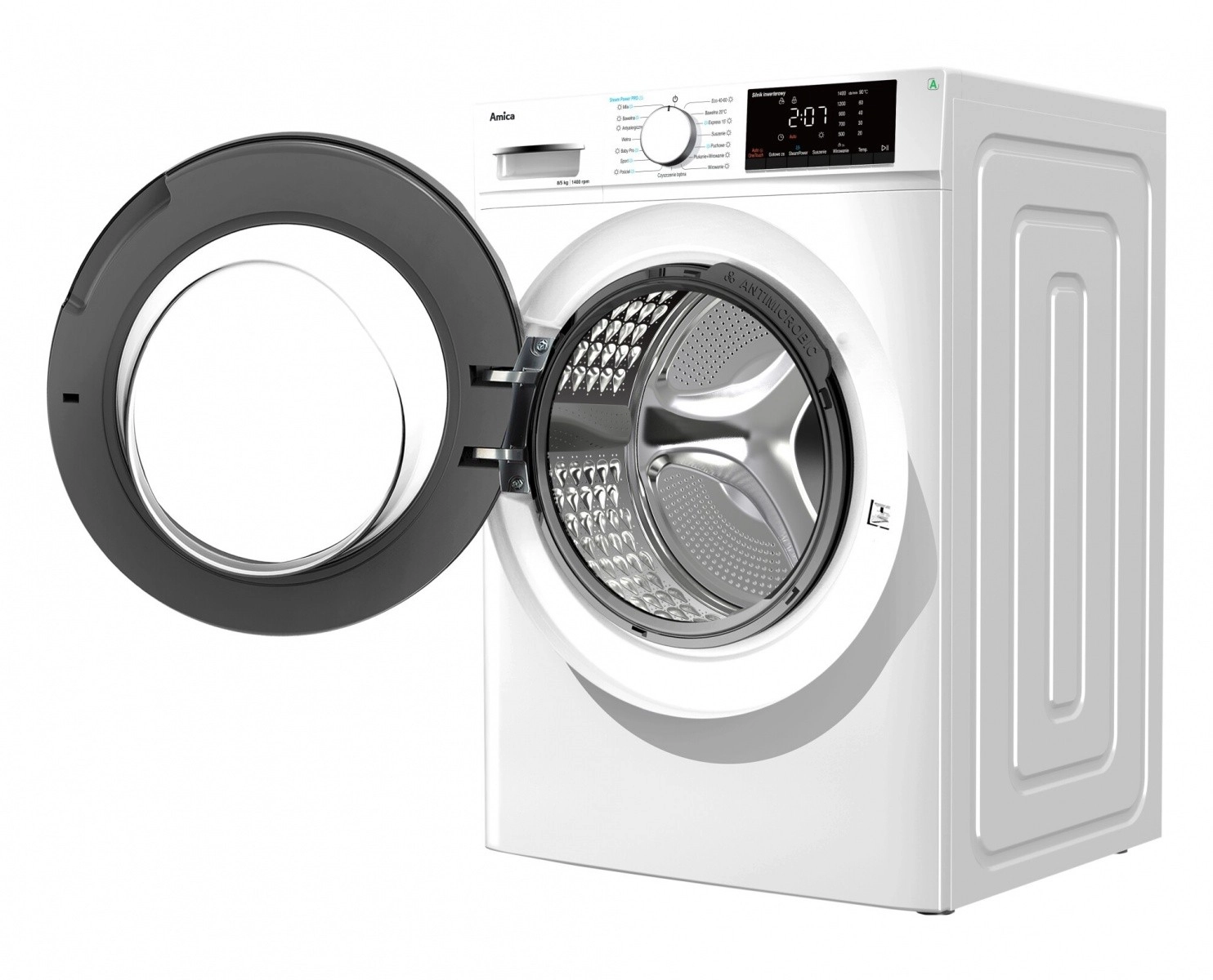 Takket være det store, mørktonede vindue er håndteringen af vasketøjet komfortabel, og tromlen i rustfrit stål behandler fibrene skånsomt. Vælg blandt et bredt udvalg af hurtigprogrammer, intensiv vask eller energibesparende cyklusser, og udnyt muligheden for fuldautomatisk vask og tørring uden afbrydelse.