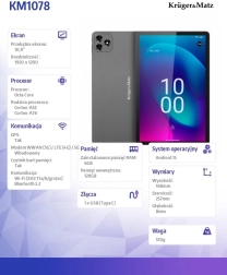 KRUGER&MATZ EAGLE 1078S leverer afbalanceret ydeevne og topbillede. 10,95" IPS med opløsning 1920 × 1200 og 90 Hz sikrer jævn rulning, skarpere animationer og flotte farver til arbejde, streaming og spil. Metalhuset er tyndt og behageligt let, så du nemt kan tage tabletten med overalt.