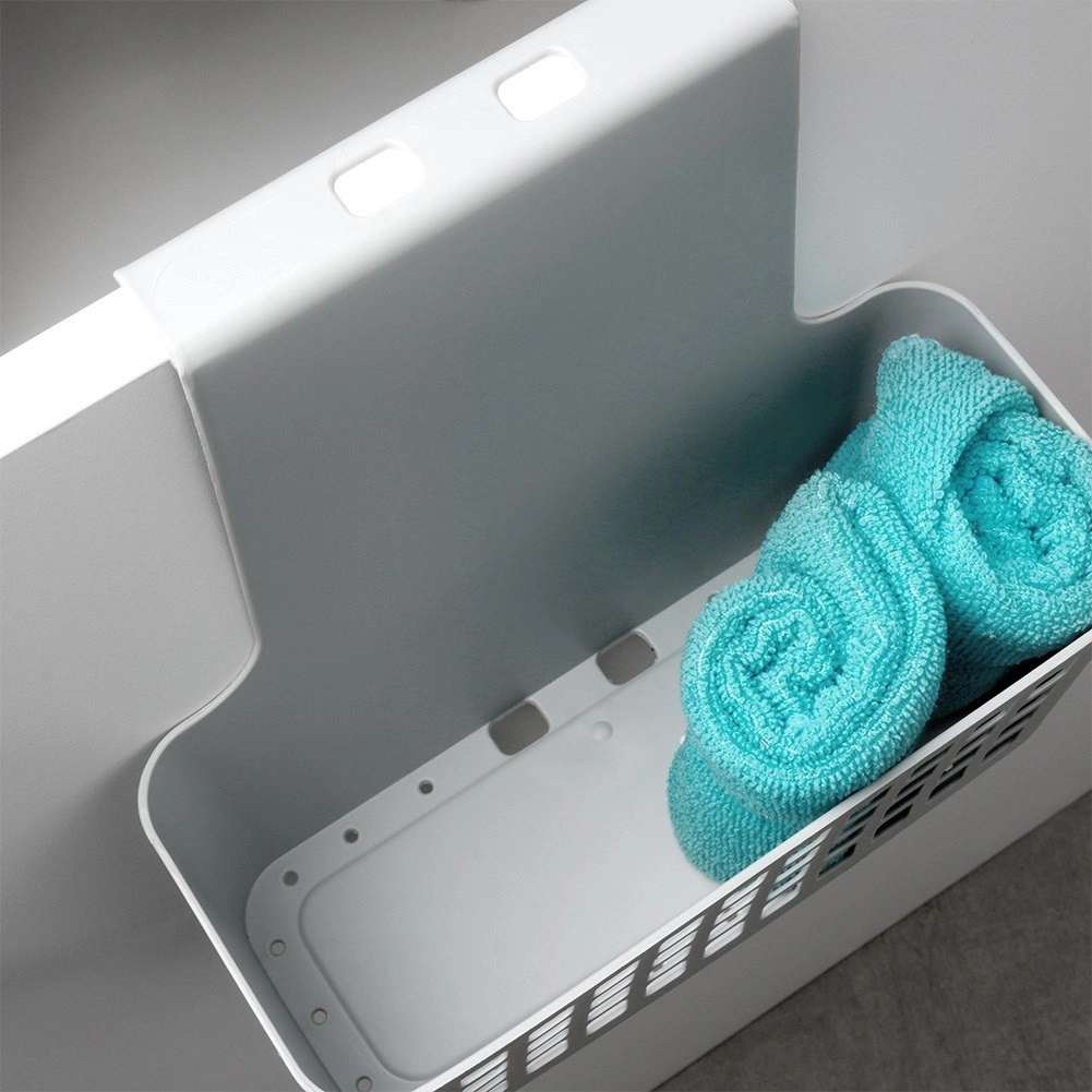 Maksimér opbevaringspladsen på få sekunder – sæt blot den hængende kurv på dørens overkant, og alt er lige ved hånden. Ideel til køkken- og badeværelsesartikler, rengøringsmidler, folieruller, poser eller små flasker. Det perforerede design fremmer ventilation og afledning af vand, hvilket gør den perfekt selv i fugtige omgivelser.