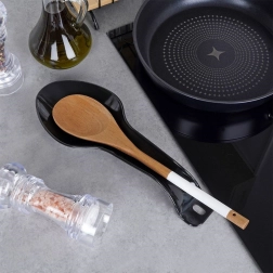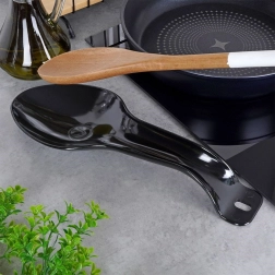Denne praktiske bakke til grydeskeer og øser hjælper med at holde arbejdsfladen ren under madlavning. Den formede skål opfanger dryp og saucerester, så du undgår klistrede pletter på bordpladen og ved komfuret. Det minimalistiske, moderne design i sort passer ind i ethvert køkken.