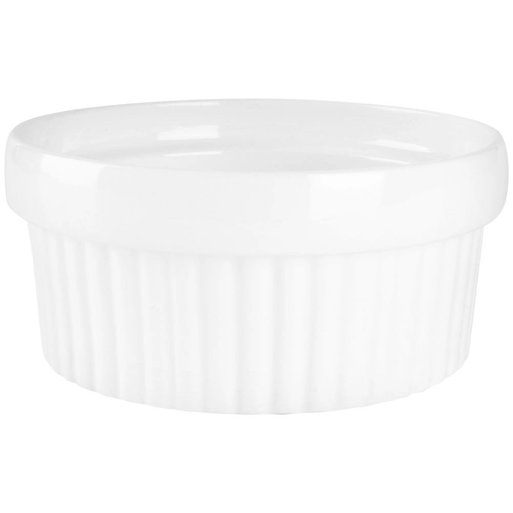 Disse hvide keramiske ramekiner med riflede sider giver dit køkken et tidløst look og pålidelig ydeevne. Keramikken sikrer jævn bagning og stabil temperatur, hvilket gør dem perfekte til cremede desserter, luftige souffléer og salte portionsretter. En praktisk kant gør det nemt at håndtere og servere direkte ved bordet.