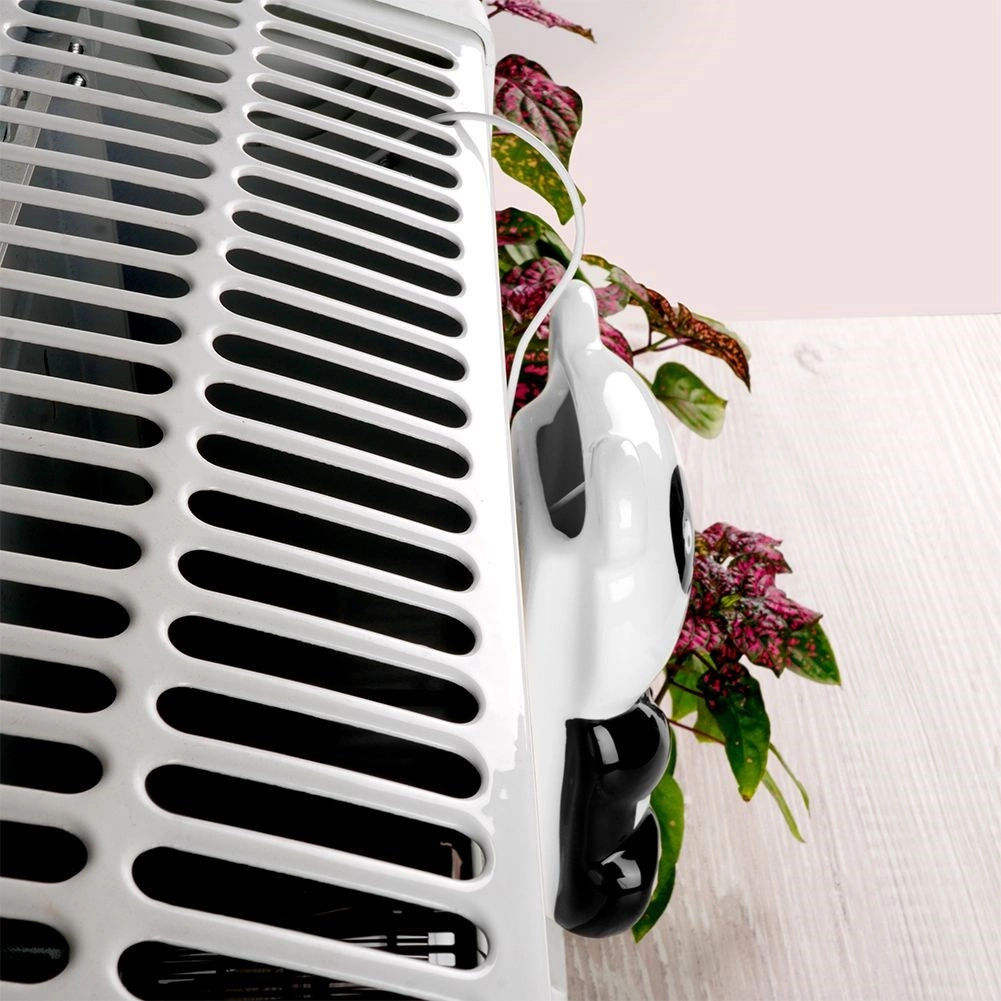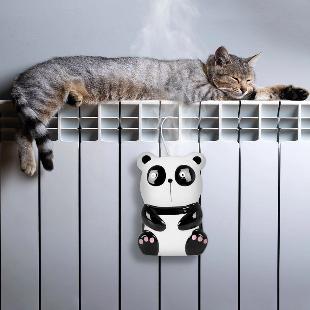 Sød keramisk luftfugter i pandaform til ophæng på radiatoren hjælper med at holde optimal luftfugtighed i fyringssæsonen. Fyld den blot med vand og hæng den på en krog – varmen fra radiatoren fordamper vandet naturligt. Takket være de kompakte mål 11 × 4 × 16 cm og en kapacitet på 190 ml er den praktisk til børneværelset, soveværelset og stuen. Nemt at bruge, keramisk udførelse og dekorativt design gør den til et funktionelt tilbehør i enhver husstand.