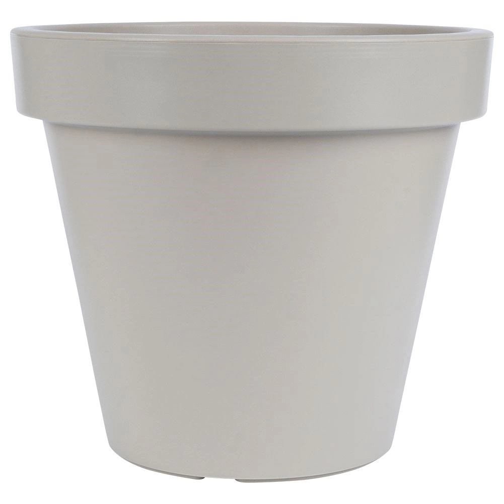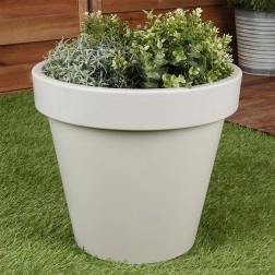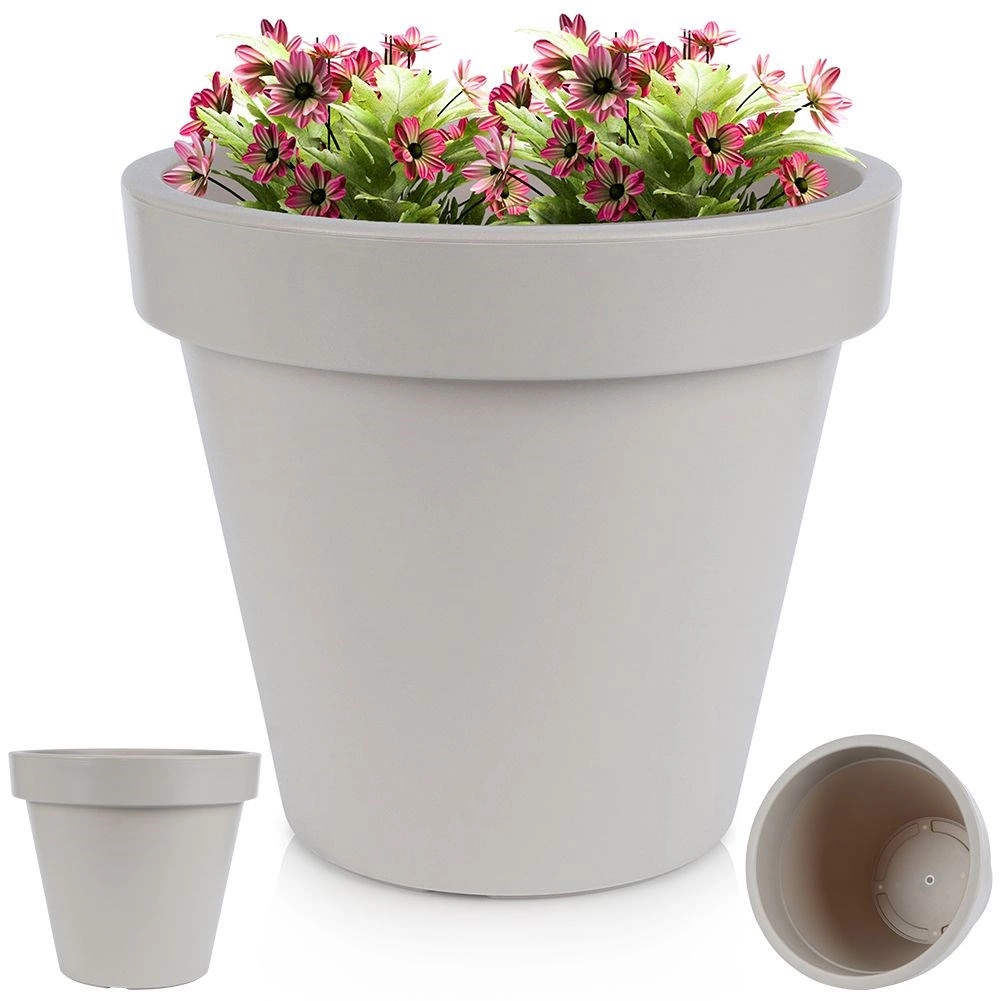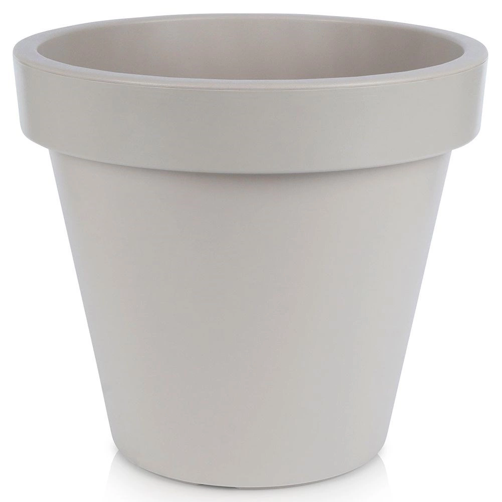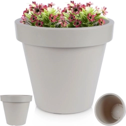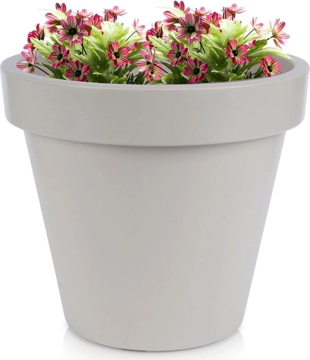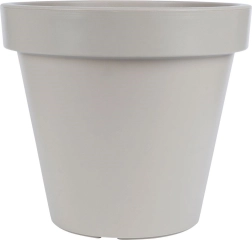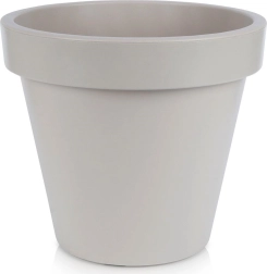 En praktisk og stilfuld plantekrukke med klassisk form og bred kant, ideel til prydplanter, blomster og krydderurter. Takket være den lave vægt er den nem at håndtere, men den er samtidig lavet af robust plast, der tåler daglig brug og omskifteligt vejr.