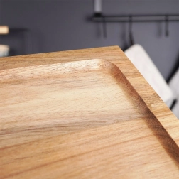 Dette alsidige serveringsbræt med ben udmærker sig ved et rent design og funktionalitet. Takket være solidt akacietræ er det modstandsdygtigt over for fugt og deformation og egner sig perfekt til daglig brug i køkkenet såvel som ved selskaber. De forhøjede kanter holder maden på plads og gør det lettere at bære.