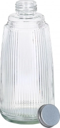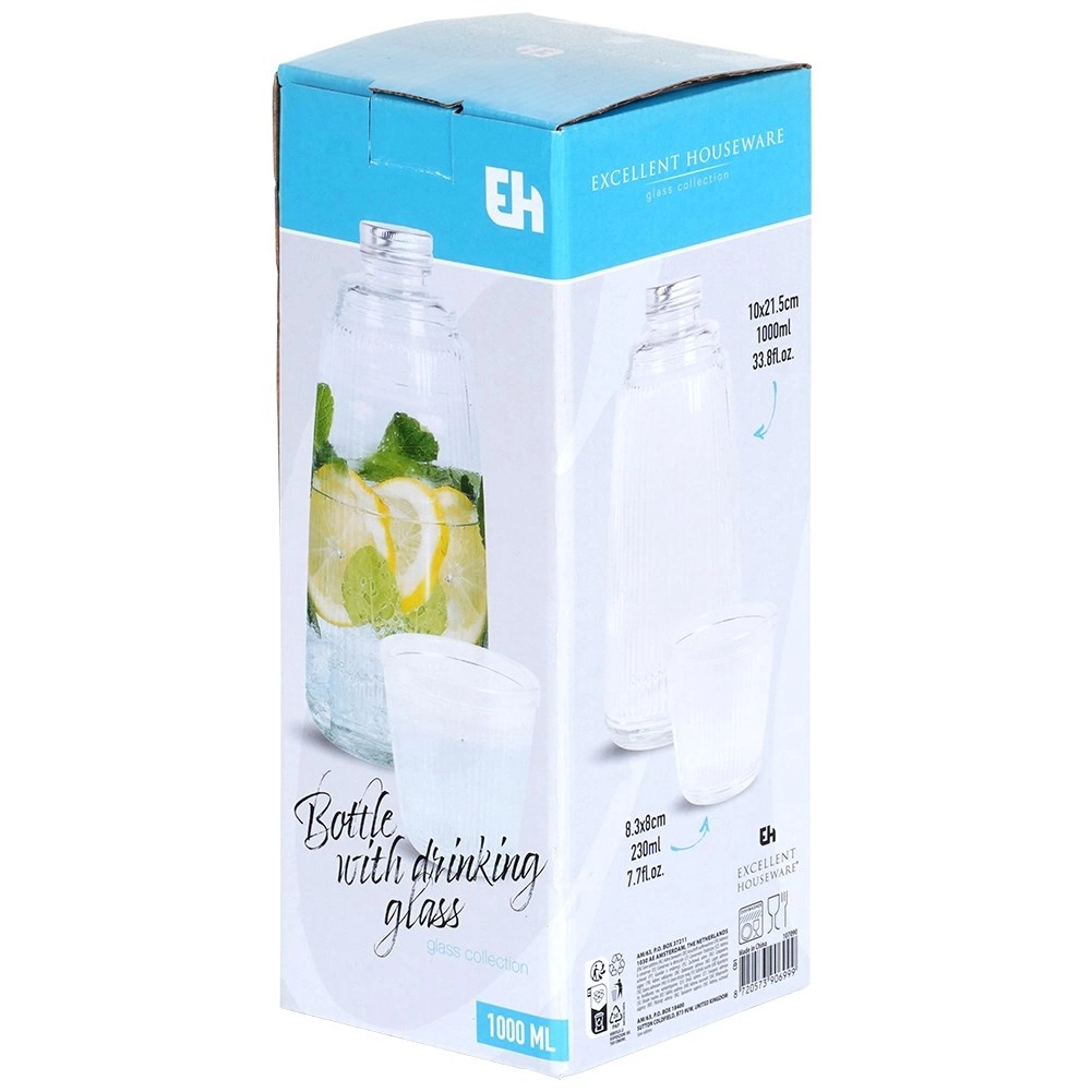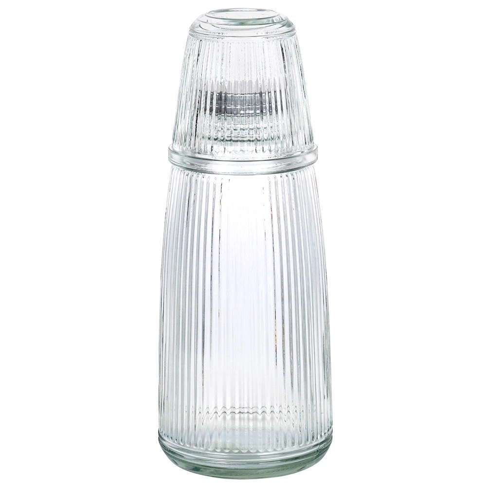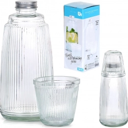 Dette alsidige glassæt kombinerer funktionalitet og æstetik: karaffel på 1 l med skruelåg og glas på 220 ml med vertikale rifler. Det klare, tykke glas fremhæver smukt drikkenes farver og tager sig godt ud på ethvert bord både hjemme og i haven.