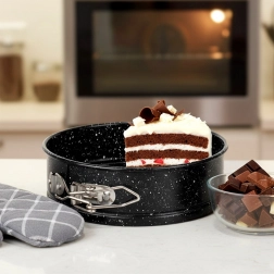 Denne springform 14 cm er det perfekte valg til små portioner af både søde og salte bagværk. Med låsering og aftagelig bund kan du nemt tage bunden ud uden at ødelægge formen. Den granitbaserede nonstick-belægning mindsker fastbrænding selv ved minimal mængde fedt og gør rengøringen lettere.