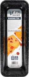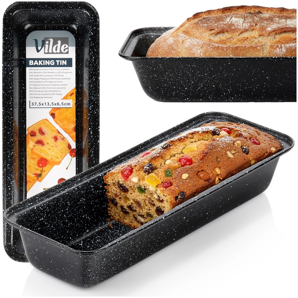 Denne rektangulære form i robust kulstål med granit non-stick belægning er perfekt til hjemmebagt brød, pate, kiks, sandkager og hævede deje. Den fordeler varmen jævnt, absorberer hverken lugte eller væsker, og dit bagværk bliver altid flot og gyldent gennembagt.