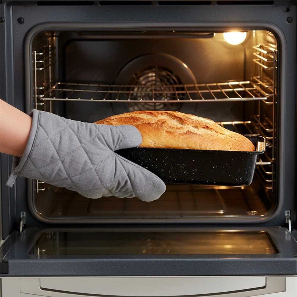Den klassiske rektangulære form og let afrundede hjørner gør det nemt at fordele dejen og tage det færdige brød ud uden skader.