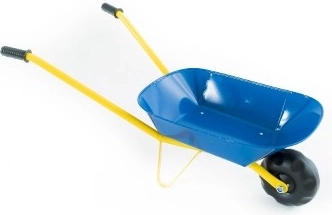 Praktisk trillebør til børn for små haveentusiaster. Takket være den metallige konstruktion og det plasthjul transporterer den nemt sand, jord og planter. Let håndtering, populært blåt design og mål på 75 × 30 × 40 cm er ideelle til børn fra 3 år.