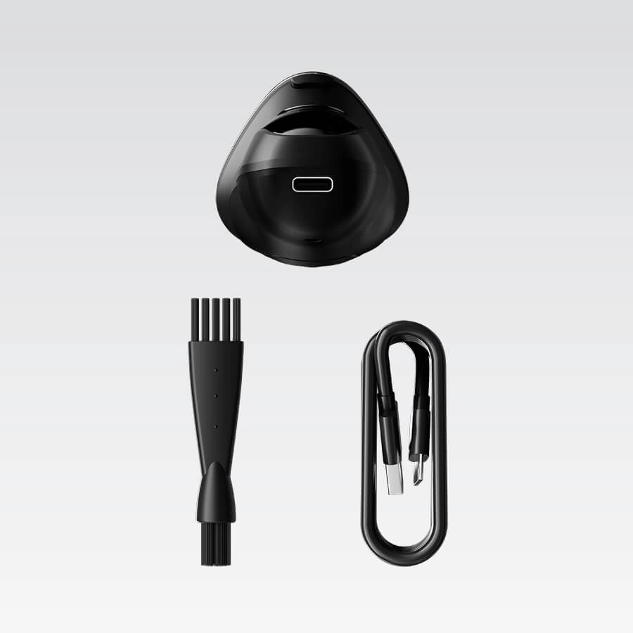 Takket være de kompakte mål 15,5 × 6 × 5,5 cm er shaveren let, ligger godt i hånden og passer nemt i toilettasken. I pakken finder du en USB-kabel til opladning og en rensebørste for problemfri vedligeholdelse.