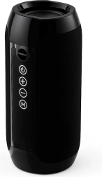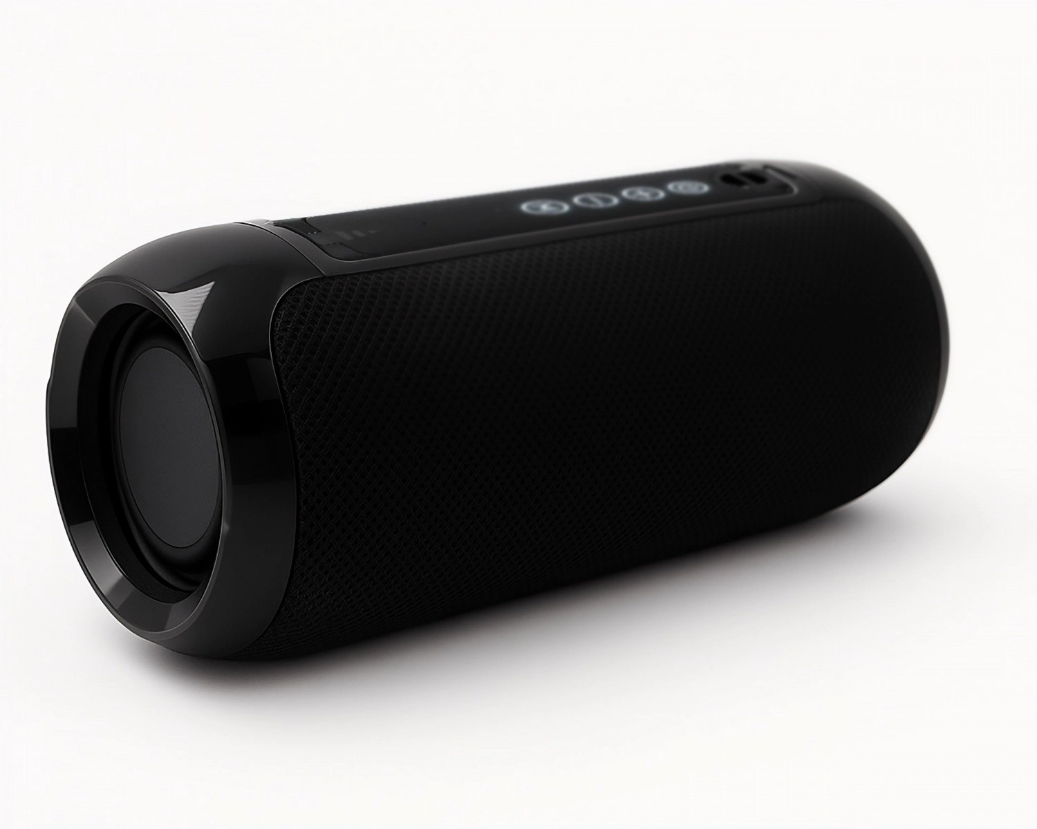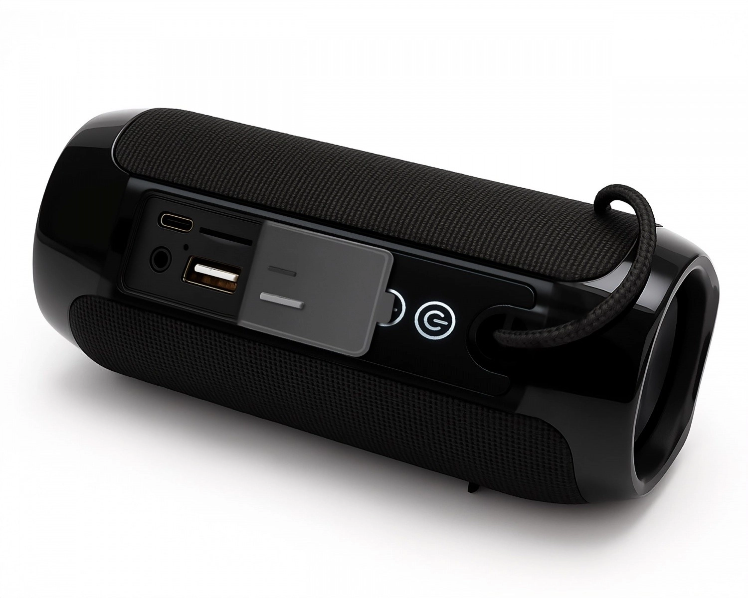Den robuste cylindriske konstruktion med passive radiatorer fremhæver bassen og er samtidig let at tage med. Opladning via USB‑C er hurtig og bekvem, så du kan tage musikken med overalt – fra strand og camping til hygge på altanen.