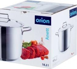Oplev den pålidelige rustfri stålkasserolle ANETT med diameter 30 cm og volumen 18 l, fremstillet af førsteklasses 18/10 stål. Den massive konstruktion, de kraftige vægge og det praktiske låg i rustfrit stål garanterer lang holdbarhed og komfortabel madlavning i store mængder. Velegnet til både husholdninger og storkøkkener.