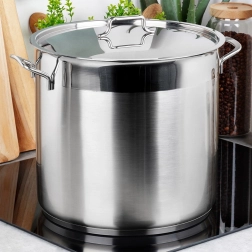 Den storvolumene rustfri stålkasserolle ANETT på 18 l med solid låg er ideel til at koge supper, fond og til at braisere store portioner. Takket være kvalitetsstål 18/10, flerlags akutermisk bund og kompatibilitet med alle komfurtyper inkl. induktion giver den hurtig og jævn varmefordeling. Robuste vægge, komfortable håndtag og nem vedligeholdelse i opvaskemaskine gør den til en pålidelig hjælper i både hjemmet og det professionelle køkken.
