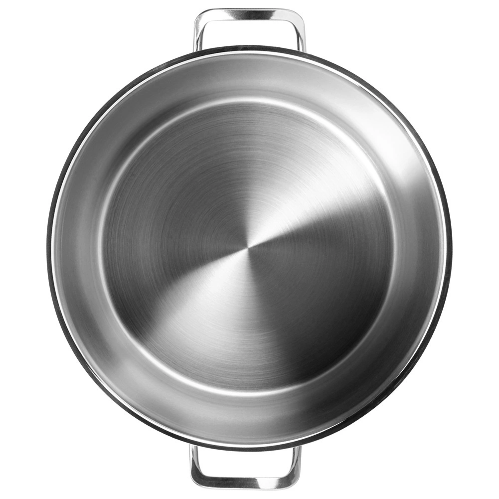 Den specialdesignede bund akkumulerer og fordeler varmen jævnt, så du koger hurtigere og mere energibesparende – perfekt til fonds og langsom braisering.