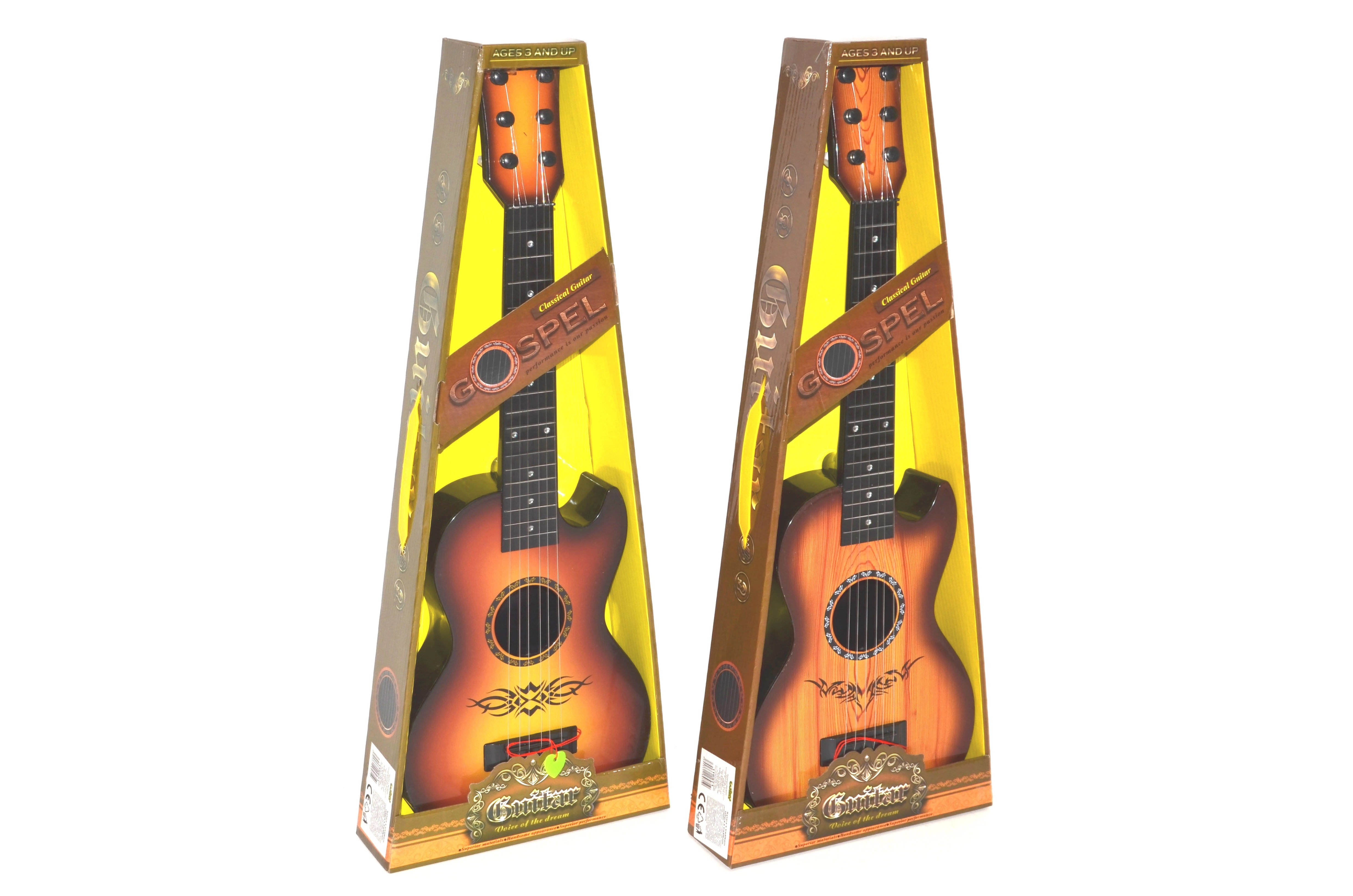 Opdag glæden ved musik med denne plastik børneguitar på 59 cm, der trofast imiterer et rigtigt instrument. Den har fire strenge, og i pakken medfølger et plekter – ideel til de første musikalske skridt for børn fra 3 år.