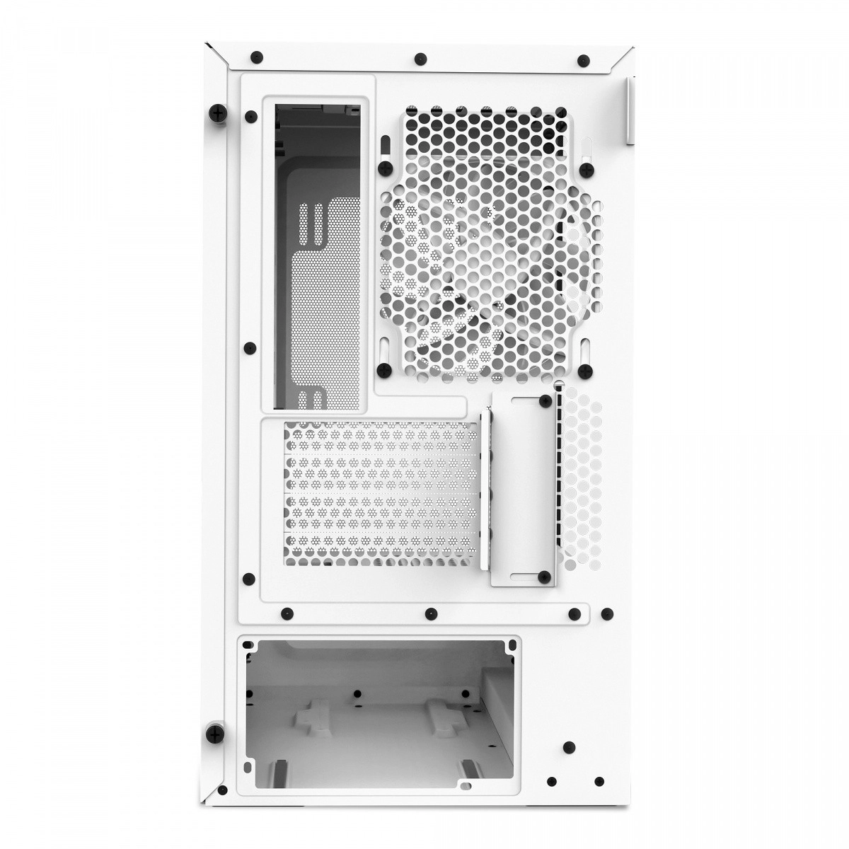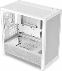 NZXT H3 Flow er designet til entusiaster, der ønsker et kompakt micro-ATX kabinet uden kompromiser på køleydelsen. Fuldflade meshpaneler på front, top og side maksimerer luftgennemstrømningen og filtrerer effektivt støv, mens en ventileret PSU-tunnel forbedrer indsugningen nedefra.