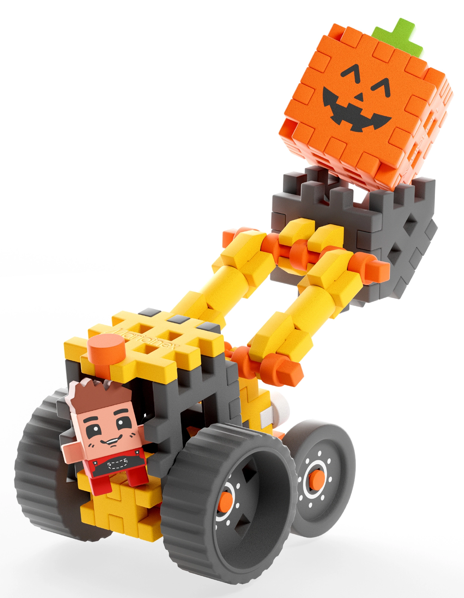 Byg en realistisk frontlæsser og tag på bondeeventyr med figuren Freddy. Takket være de fleksible Mini Waffle-klodser er sættet nemt at samle og skille ad, så børn kan bygge, tilpasse og finde på nye historier igen og igen. Den bevægelige arm og de robuste hjul giver masser af action og sjov, når der flyttes "græskar" og ryddes på gårdspladsen.