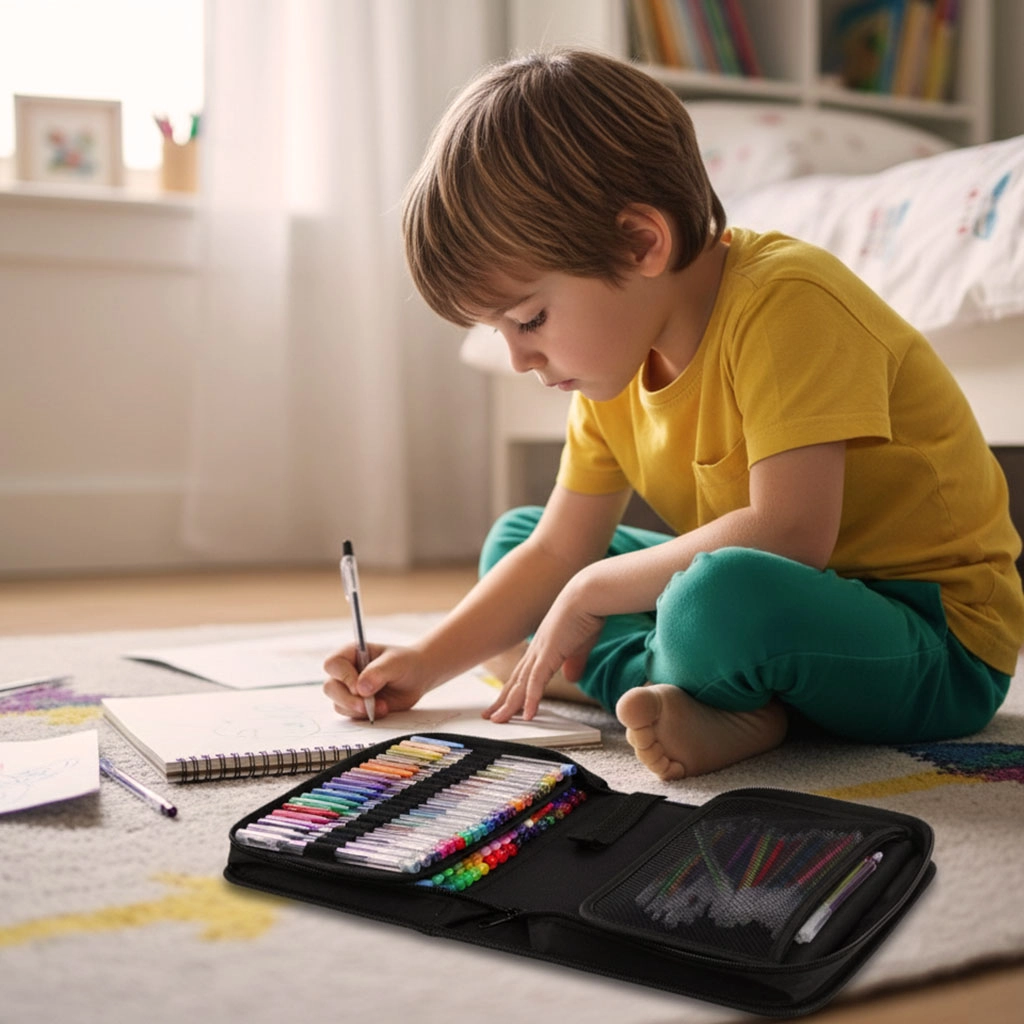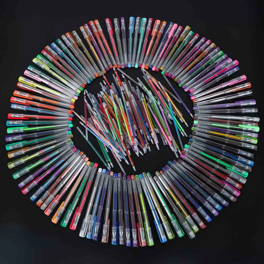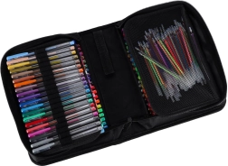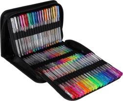 Oplev et alsidigt sæt til skole, kontor og fritid: 100 gelpenne i en rig palet af farver og effekter, plus 100 ekstra refiller. Det overskuelige foldbare etui med lynlås holder hver pen på sin plads, så du altid har alle farver ved hånden og sikkert opbevaret.