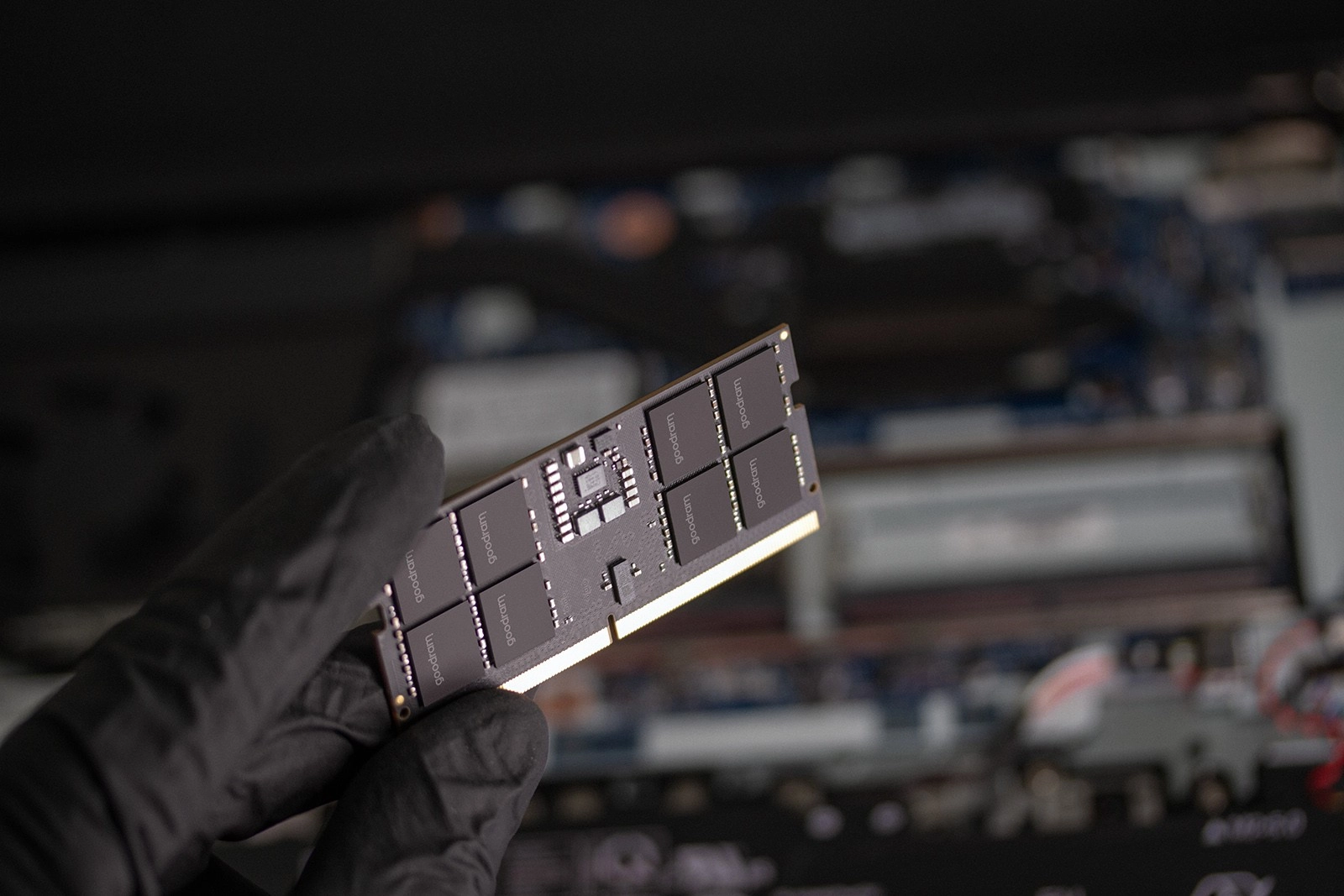 Det kompakte SO‑DIMM‑modul gør det muligt at opgradere hukommelsen hurtigt uden kompliceret indgreb i enheden.