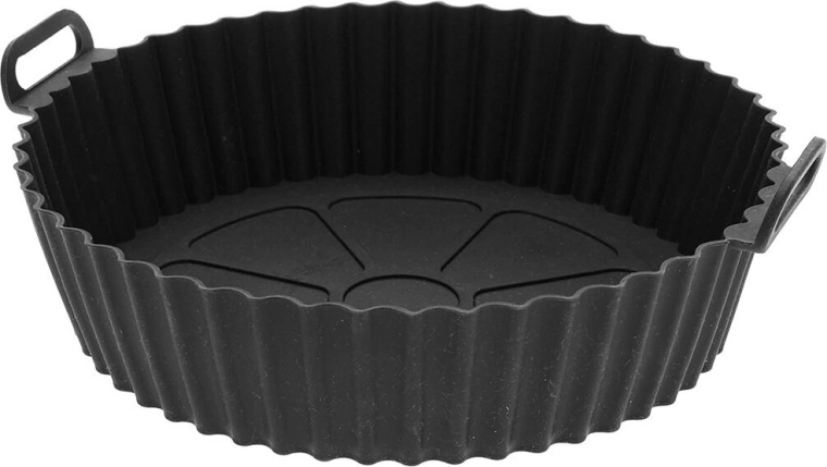 Praktisk silikonekurv til airfryer med en diameter på 20,5 cm sikrer ren og bekvem madlavning uden fastbrænding. Den er genanvendelig, non-stick og takket være sidehåndtagene er den let at sætte i og tage ud. Velegnet til Air Fryer, ovn, frys og opvaskemaskine.