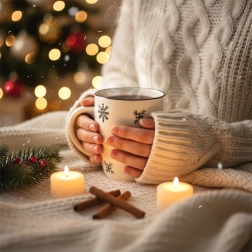 Stilfuldt keramisk krus med vintermotiv, ideelt til daglig brug. Det har en kapacitet på 350 ml, et behageligt håndtag og en tynd mørk kant for et elegant udtryk. Velegnet til te, kaffe og varm chokolade og skaber en dejlig vinterstemning. Kruset er lavet af kvalitetskeramik, er egnet til opvaskemaskine og mikrobølgeovn, og takket være det ergonomiske håndtag ligger det godt i hånden.