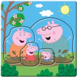 Puslesæt Peppa Pig: Familie bringer stor glæde for små børn, der lærer at placere former korrekt. Sættet indeholder tre billeder opdelt i 3–5 brikker, så når dit barn mestrer det nemmeste, kan det gå videre til de mere udfordrende. Hvert puslespil har et smukt motiv af grisepigen Peppa, som vil fange interessen hos enhver lille bygger.