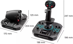 Joysticket tilbyder 3 akser (X, Y, Z) med H.E.A.R.T. (HallEffect AccuRate Technology)-sensorer i 16-bit opløsning til fine manøvrer. På basen og grebet finder du et rigt sæt knapper, hats, minijoystick og roterende elementer, der lader dig have sigte, bevæbning og modforanstaltninger lige ved hånden.