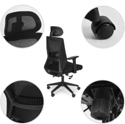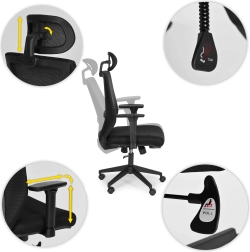 Leder du efter komfortabel og sund støtte til hverdagsarbejdet ved skrivebordet? Denne ergonomiske stol fra MODERNHOME kombinerer moderne design med gennemtænkt funktion. Mesh-ryg giver fremragende ventilation, den justerbare nakkestøtte aflaster nakken, og lændestøtten hjælper med korrekt kurvatur i ryggen. Med en gaslift tilpasser du nemt højden, og vippe-/lås-mekanismen gør det let at variere stillingen i løbet af dagen.