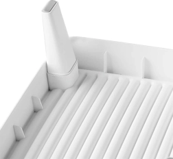 Det robuste kabinet i holdbar ABS-plast bevarer stabilitet og et pænt udseende over tid. Den skridsikre base forhindrer forskydning og beskytter gulvet mod ridser. Takket være den smarte geometri og de forhøjede kanter er brugen komfortabel og sikker for katte i alle aldre.