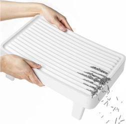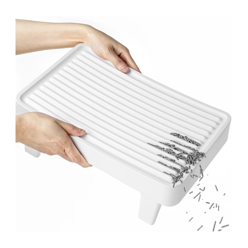 Den riflede overflade ryster og opfanger effektivt gruskorn fra kattens poter, så området omkring bakken forbliver renere, og rengøringen bliver lettere.