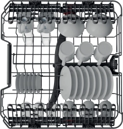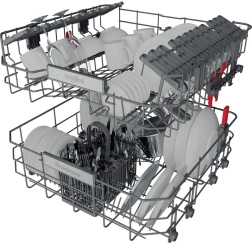Både øverste og nederste kurv har sammenklappelige pinde og højdejustering. Du kan nemt placere høje glas, bageplader og voluminøse gryder uden at gå på kompromis med kapaciteten.
