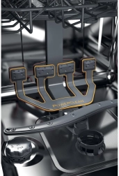 Kraftige vanddyser og flere spulearme sikrer grundig fjernelse af indtørrede madrester selv fra vanskeligt tilgængelige steder – fra glas til køkkengrej i rustfrit stål.