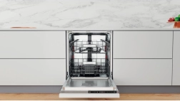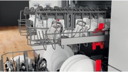 Smarte funktioner som justerbar øverste kurv, sammenklappelige pinde og separat bestikbakke eller -kurv gør det let at organisere indersiden. Den intuitive touchbetjening på dørkanten og tydelige indikatorer forenkler valget af programmer og tilvalgsfunktioner, inklusive økonomiske tilstande.