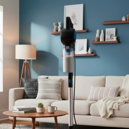 Det avancerede cyklonsystem adskiller snavs fra luften og beskytter filtrene mod tilstopning. Rustfrit forfilter med mikroperforering og EPA‑filter opfanger selv fine støvpartikler. Begge filtre er aftagelige og vaskbare for nem vedligeholdelse og lang levetid.