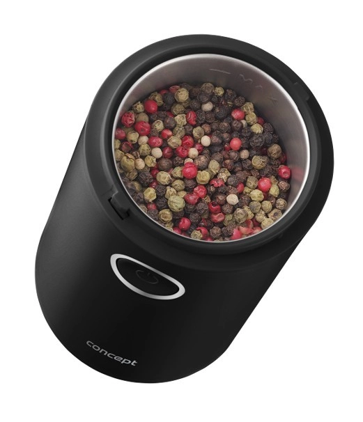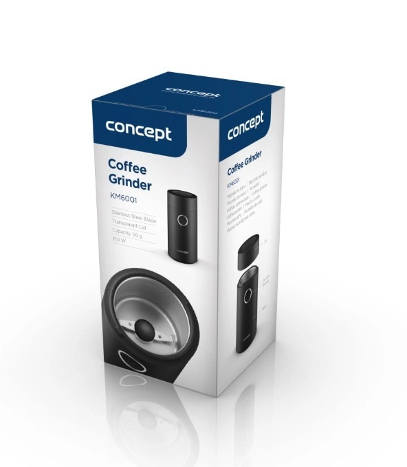 Nyd duften af friskkværnet kaffe med den kompakte CONCEPT-kværn i elegant sort. Den tilbyder hurtig kværning op til 22.000 o/min, skarpt toløbet knivblad i rustfrit stål, nem betjening med én knap og gennemsigtigt låg for perfekt kontrol af kværnegraden. Også velegnet til krydderier, urter, nødder og birkes.