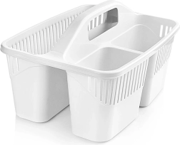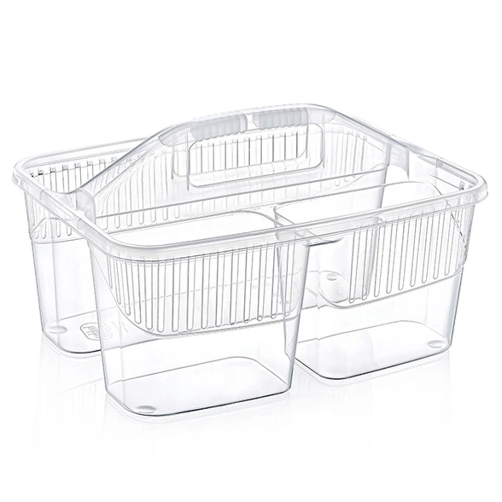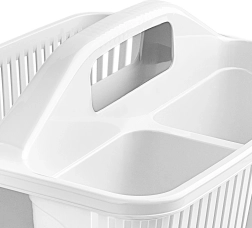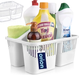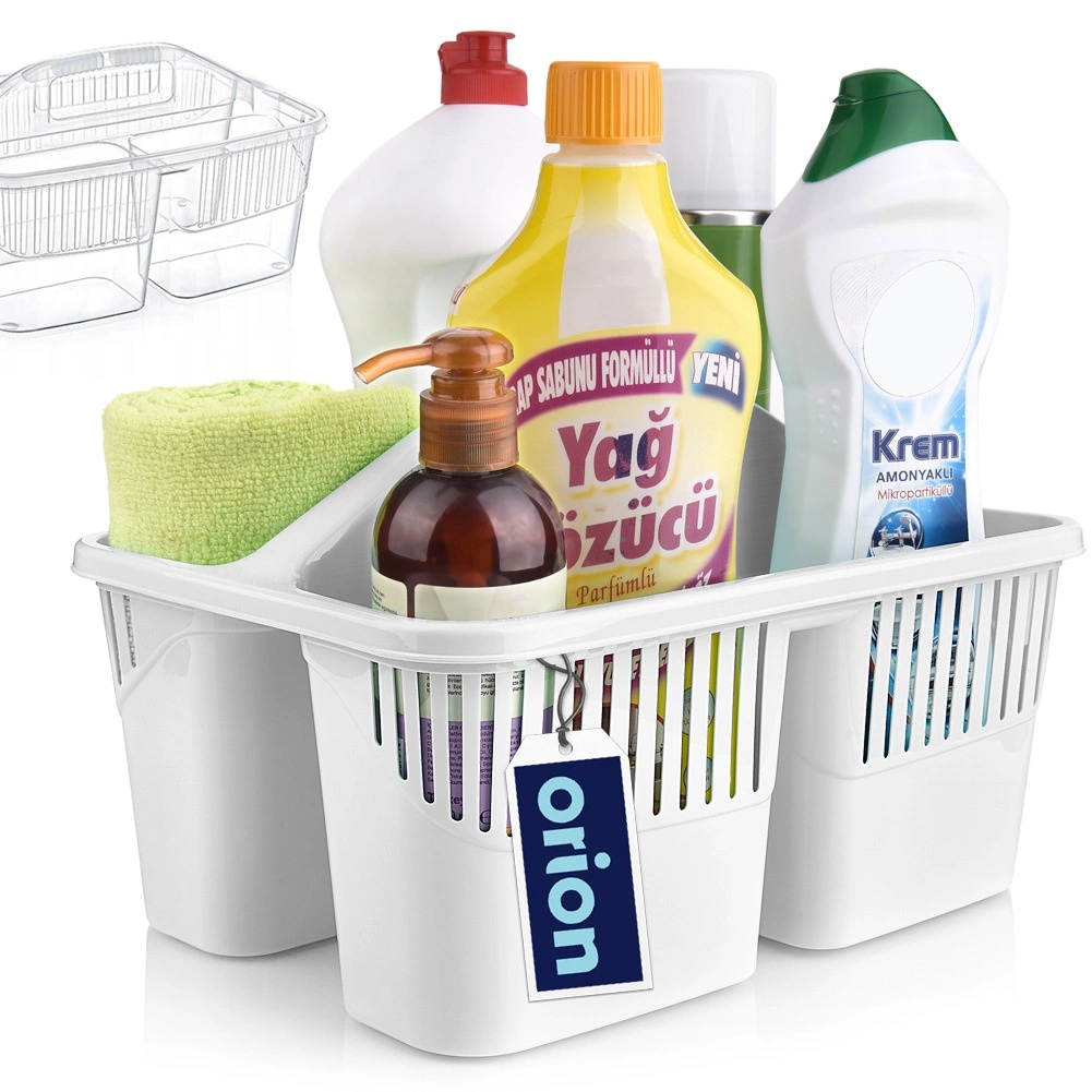 Praktisk bærbar kurv med rum til overskuelig opbevaring og nem transport af rengøringsmidler. Den har integreret håndtag, er let, holdbar, rumlig og ideel til badeværelse, køkken og hele hjemmet.