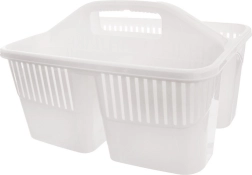 Hold styr på rengøringen med en kompakt organizer til detergenter med tre adskilte rum. Takket være det solide centrale håndtag kan du nemt bære alle nødvendige midler, børster og svampe fra rum til rum. Kurven er fremstillet af kvalitetsplast i hvid eller transparent variant (sendes tilfældigt), er let, holdbar og nem at holde ren.