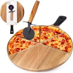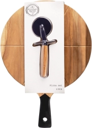 Træpizzabræt med pizzaskærer 30 cm, vendbart 2-delt sæt