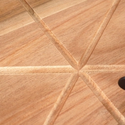 Dette elegante pizzabræt af akacietræ er designet til præcis portionsdeling og stilfuld servering. Den ene side har fræsede styrriller for nem skæring i 6 ens stykker, den anden side er glat og ideel til servering af oste, pålæg eller bagværk. Sættet inkluderer en skarp pizzaskærer i rustfrit stål med træhåndtag for et rent, glidende snit.