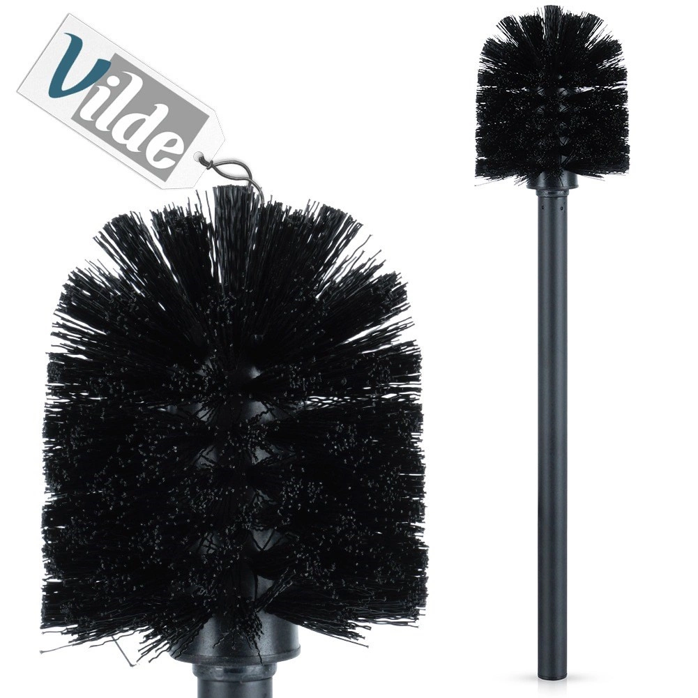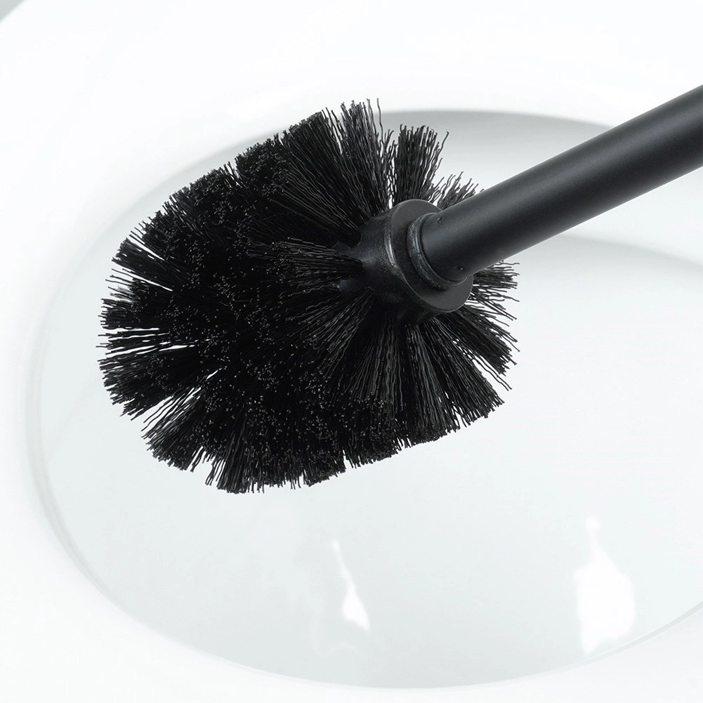 Praktisk reservetoiletbørste med en længde på 35 cm og et børstehoved med en diameter på 8 cm til effektiv rengøring af toiletskålen. Den har holdbare sorte børster, som skjuler snavs godt og er lette at vedligeholde. Universel størrelse passer i de fleste standardholdere, udskifteligt, aftageligt børstehoved og komfortabelt håndtag i rustfrit stål i mat sort for et sikkert greb. Et godt valg til enhver badeværelse.