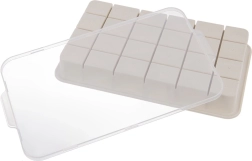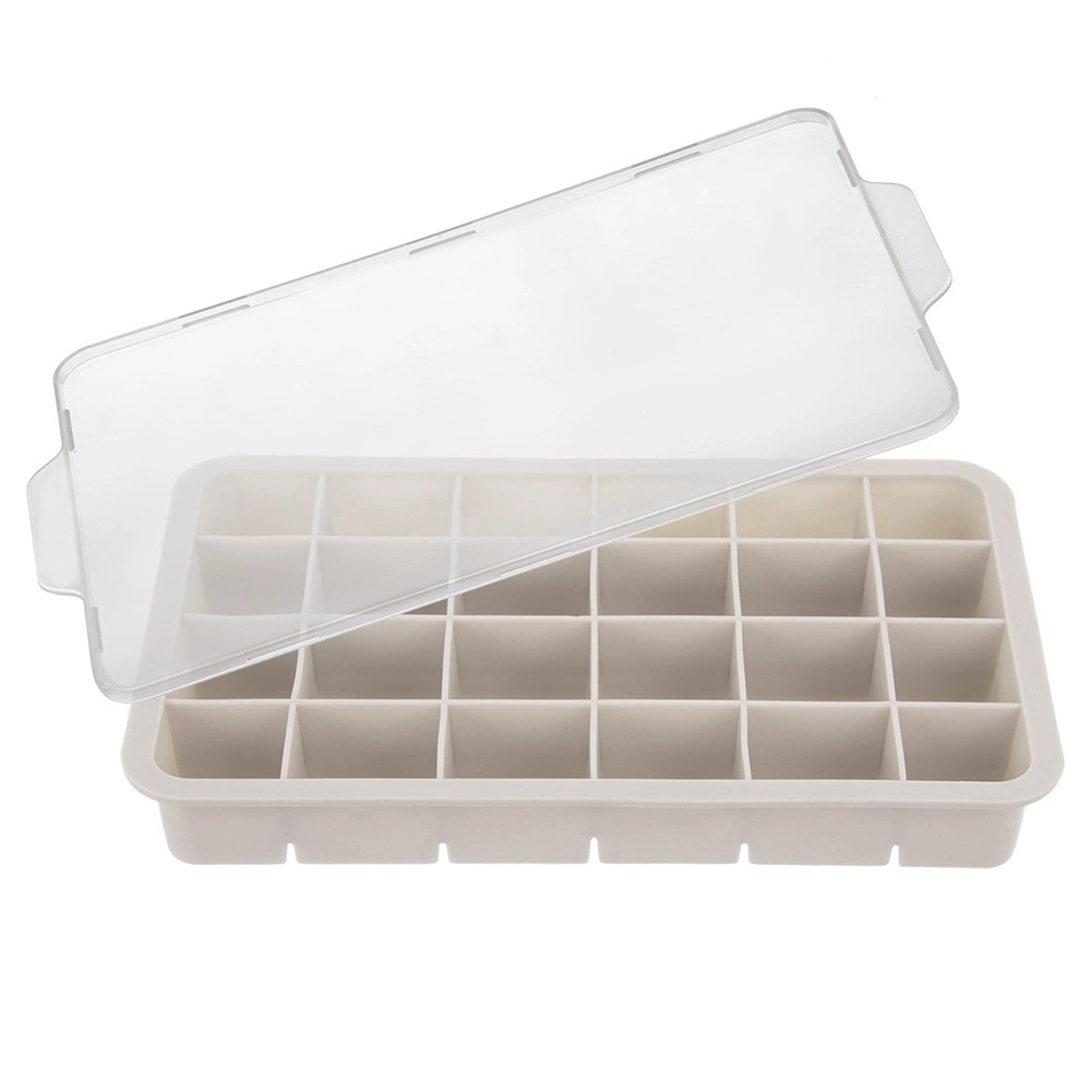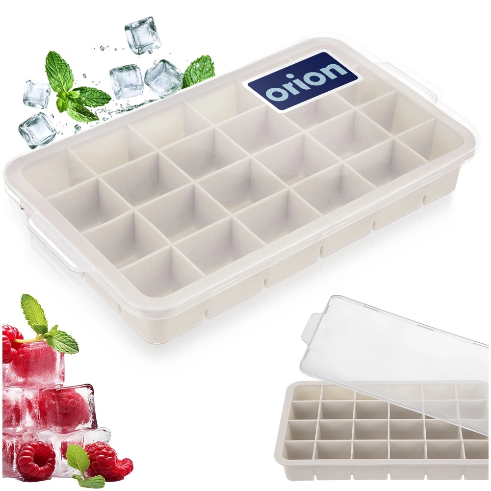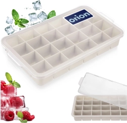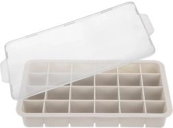 Denne beige silikoneform til isterninger med praktisk låg er en fantastisk hjælper til hverdagsbrug og fester. Den laver op til 24 ensartede terninger på ca. 3,5 × 3 cm, som hurtigt køler dine drikke og giver et friskt udseende.