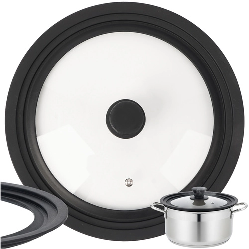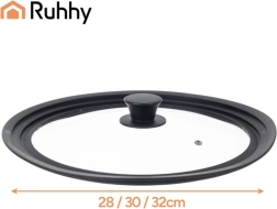 Leder du efter ét låg til flere typer køkkengrej? Det universelle låg RUHHY 3 i 1 passer takket være tre sætningstrin til diametre på 28 / 30 / 32 cm. Den silikonebeklædte kant beskytter gryders og panners kanter mod ridser og sikrer perfekt tætning, mens det gennemsigtige varmebestandige glas lader dig følge madlavningen uden at løfte låget.