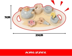 Kruzzel trætesæt er det ideelle valg til de første sociale lege. Det omhyggeligt forarbejdede træ og de blide pastelfarver giver et elegant og naturligt udtryk, så det passer smukt ind på børneværelset eller i legehjørnet. Børn vil elske at hælde “te”, servere på bakken og invitere venner eller forældre til en lille eftermiddagshygge.