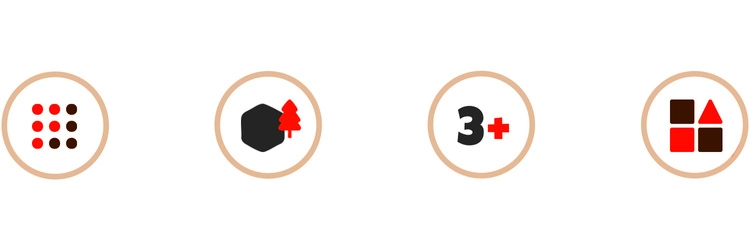 - Læring gennem leg: genkendelse af former og farver, udvikling af logisk tænkning og sociale færdigheder.