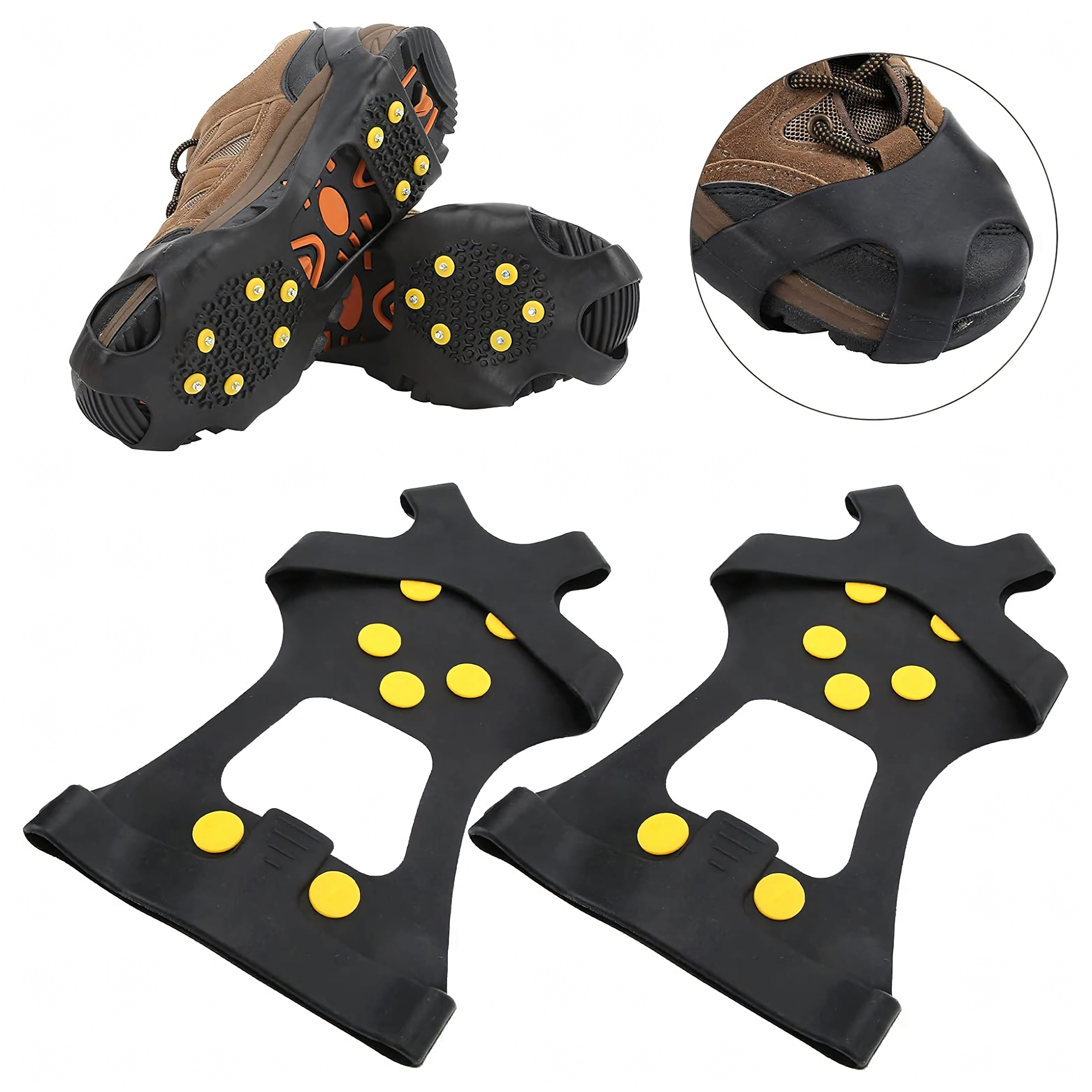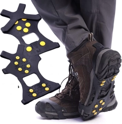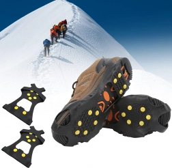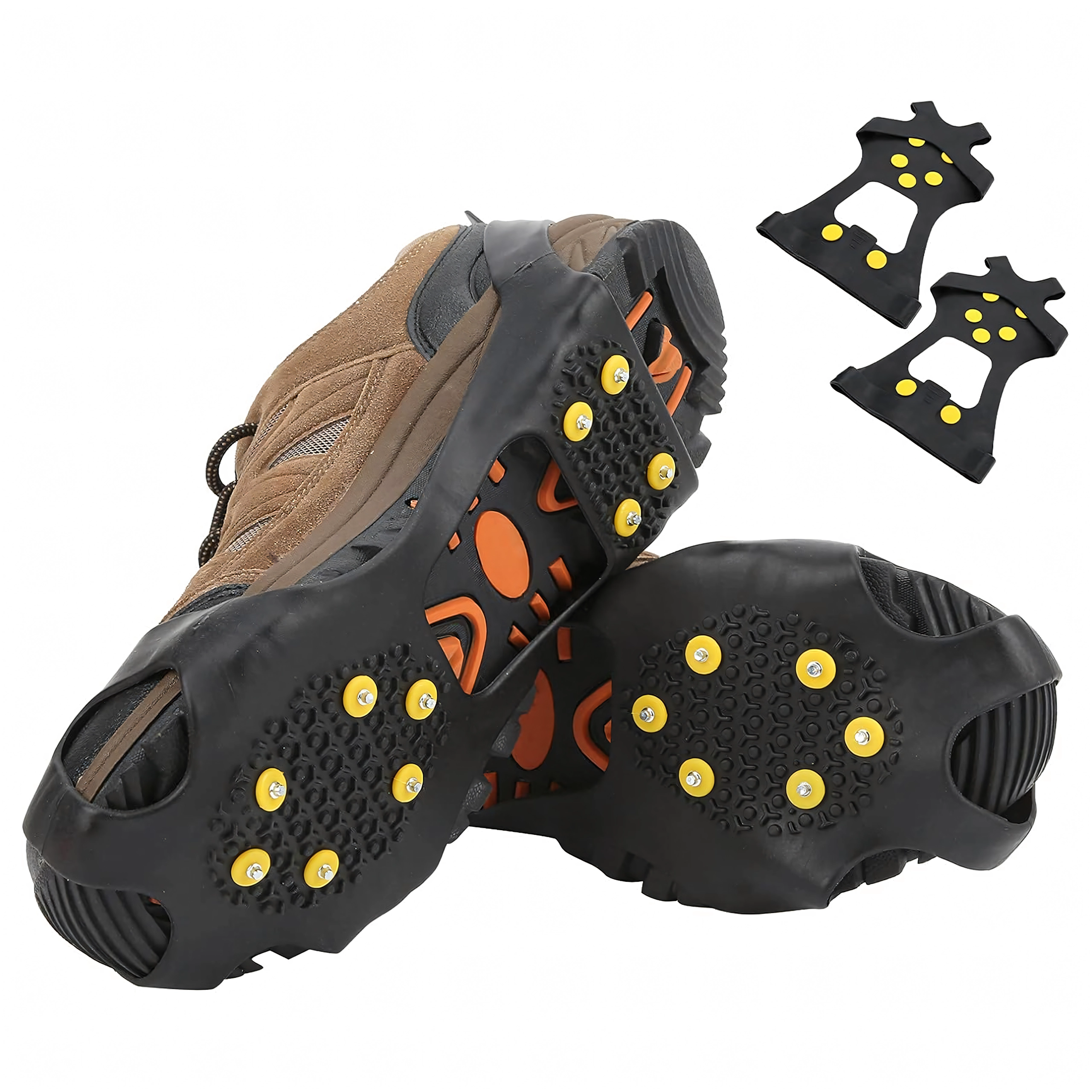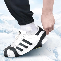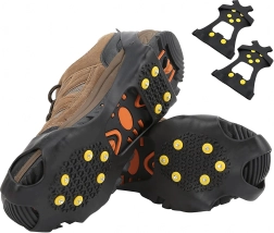 Leder du efter en enkel måde at øge sikkerheden ved gang om vinteren? Disse skridsikre overtræk med 10 metalpigge supplerer dine såler med markant trækkraft på is, fastkørt sne og sjappede overflader. Det stærke, men fleksible TPE-materiale trækkes let over tå og hæl, bliver siddende og glider ikke.