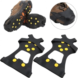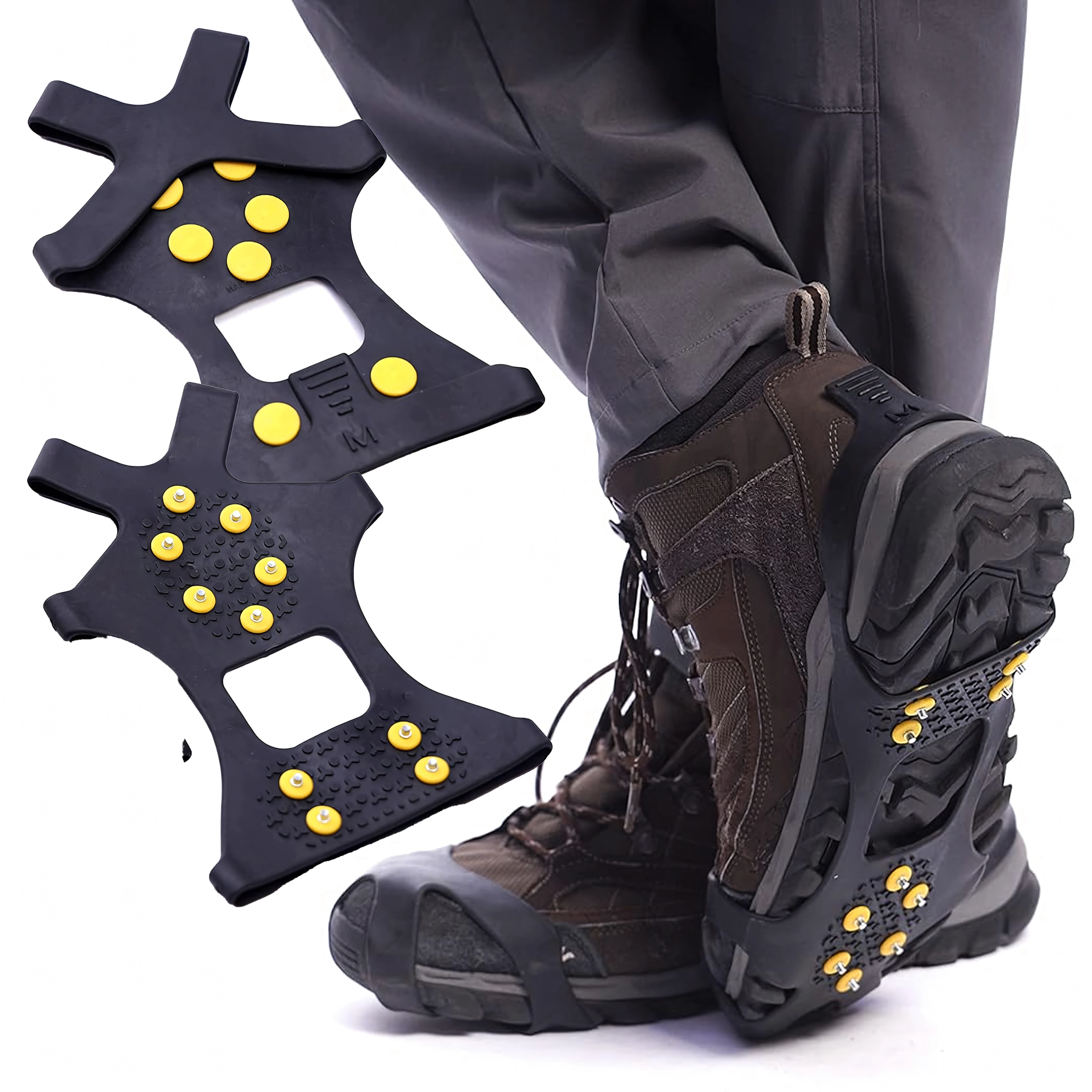 Pålidelige skridsikre skoovertræk med metalpigge for sikkert fodfæste på sne, is og mudder. Fremstillet af holdbart TPE-gummi og metal, giver fremragende greb, stabilitet og nem påtagning. 10 metalpigge giver tryghed ved hvert skridt, overtrækkene er lette, elastiske og kompakte – ideelle til vandreture, arbejde i terræn og daglig vintergang.